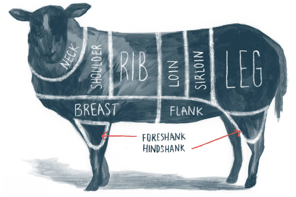 - Ngoài ra thịt cừu còn có các vị trí khác như fore shank (đùi trước), hind shank (đùi sau), breast (bụng), leg hay chump (mông).